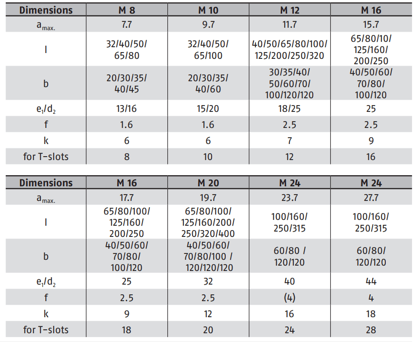 DIN 787 Винт пазовый станочный для Т-образных пазов с квадратной головкой и конусообразным подголовником применяется на обрабатывающих станках со столом для фиксации заготовок. Размеры резьбы от М6 до М24.