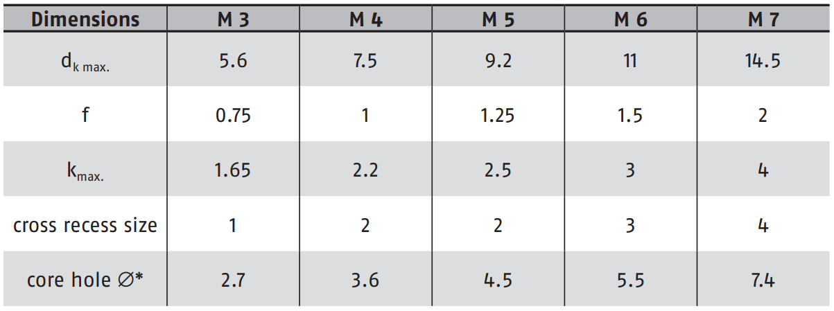 Самонарезающий винт DIN 7516 Е с крестообразным шлицем PH и полупотайной головкой, диаметр резьбы от М3 до М7. Самонарезающий винт образует при завинчивании метрическую резьбу в отверстии одной из соединяемых пластмассовых или металлических деталей.