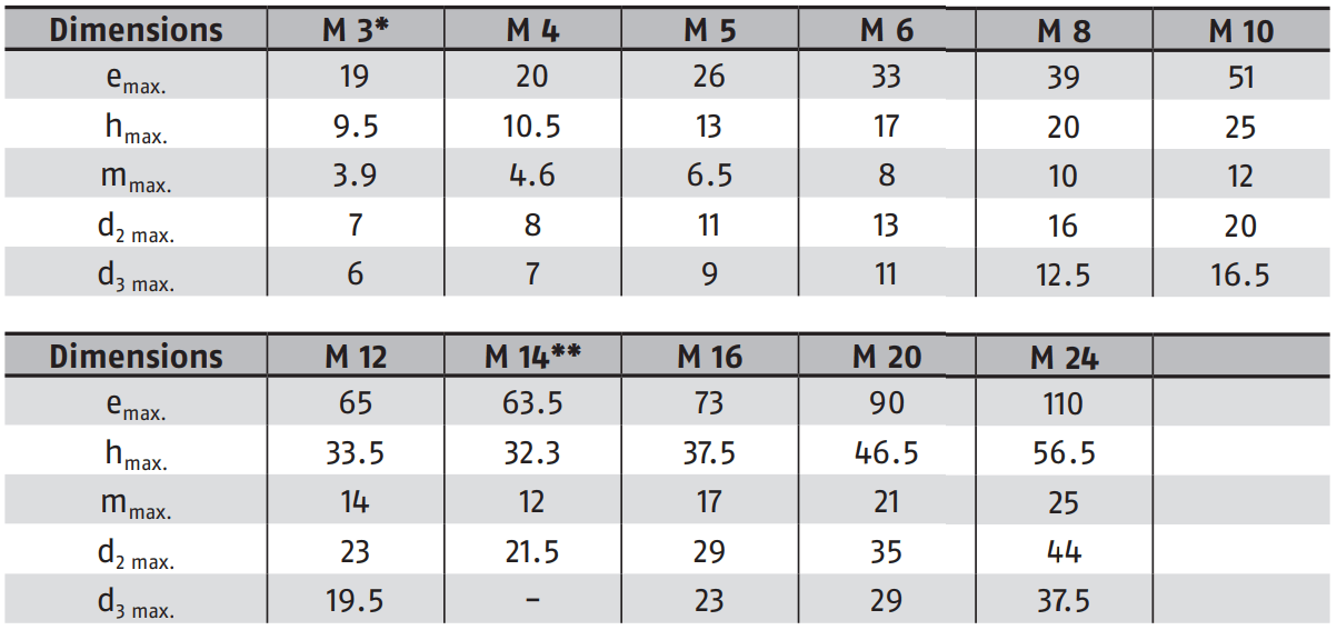 DIN 315 Гайка-барашек с округлыми лепестками, немецкая форма, размер от М3 до М24. Гайки-барашек используются для часто разбираемых соединений с небольшими нагрузками. Гайки-барашек имеют плоские выступающие элементы для передачи крутящего момента и затягиваются вручную без ключа.