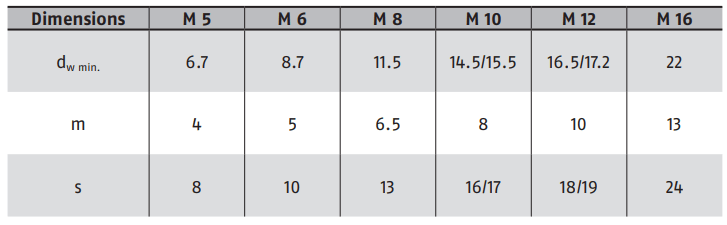 Размеры квадратных гаек с фаской DIN 557 в мм