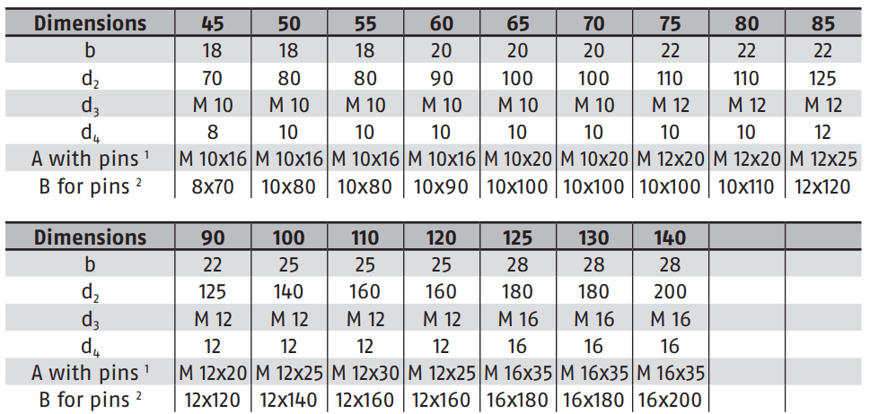 Размеры установочных колец DIN 705 B под винт (лёгкая серия) в мм