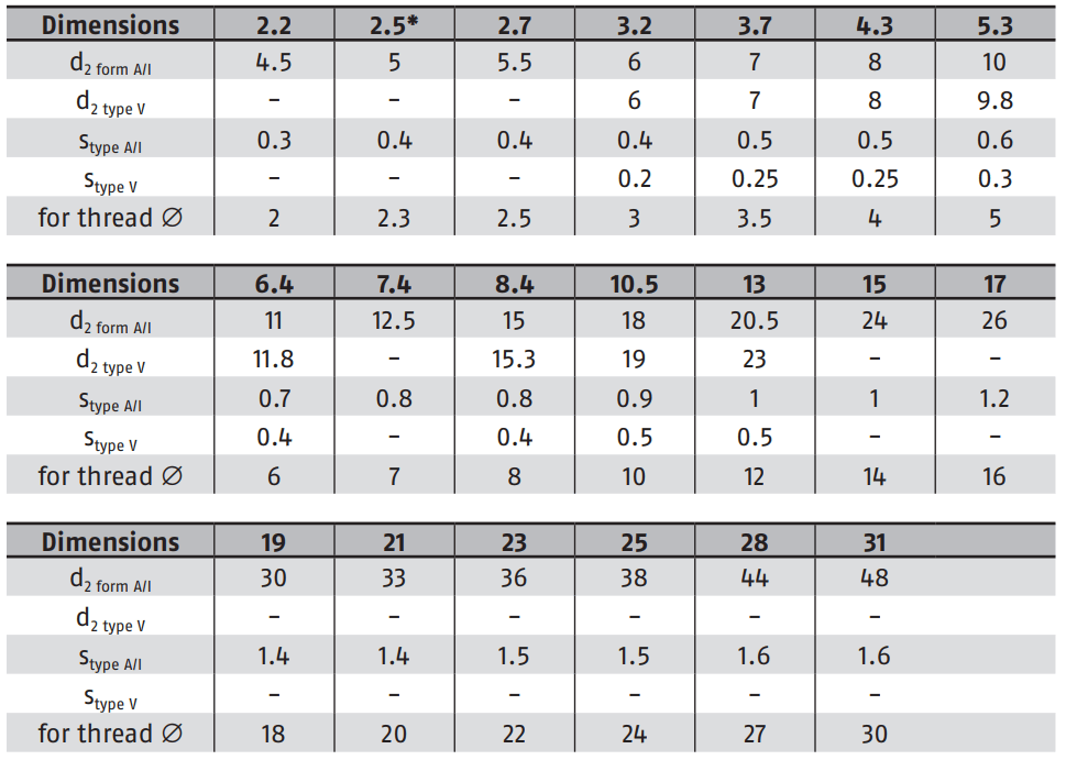 Размеры стопорной зубчатой шайбы DIN 6798 A с наружными зубьями в мм