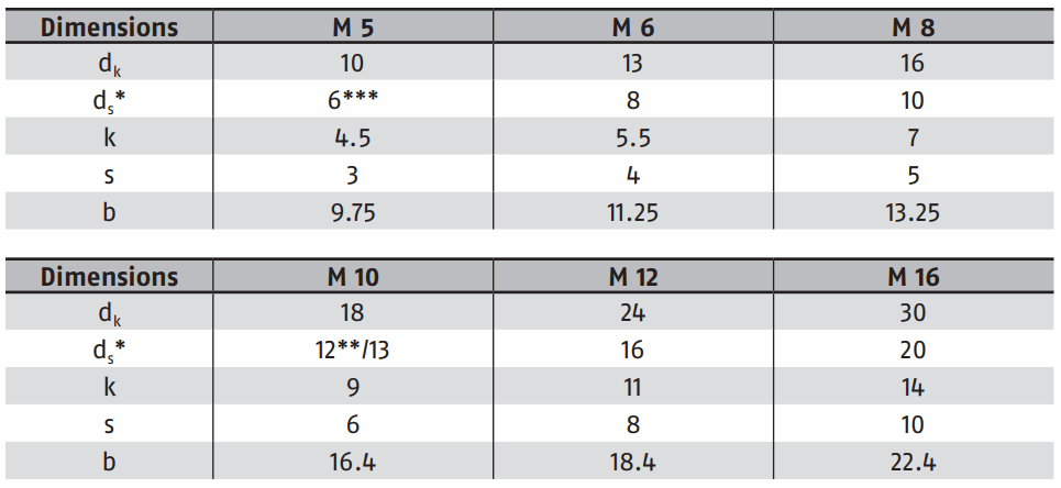 Таблица размеров винтов DIN 7379 для отверстий из-под развертки
